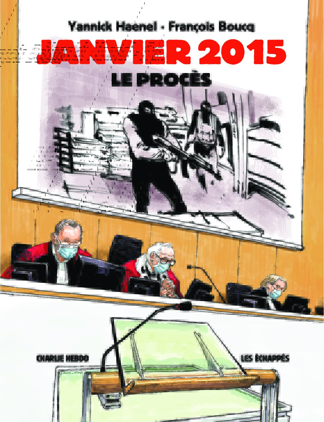 Au mois de janvier est également paru un livre qui revient sur ces tragiques attaques, au travers de la retranscription du procès des attentats de janvier 2015 commencé le 2 septembre 2020. Janvier 2015 – Le procès n’est pas une bande dessinée, il s’agit d’un recueil de textes écrits par Yannick Haenel, des citations et de dessins de François Boucq. Les deux auteurs ayant assisté à la totalité des audiences, ce riche et très dense volume regroupe l’intégralité des deux mois et demi de procès.