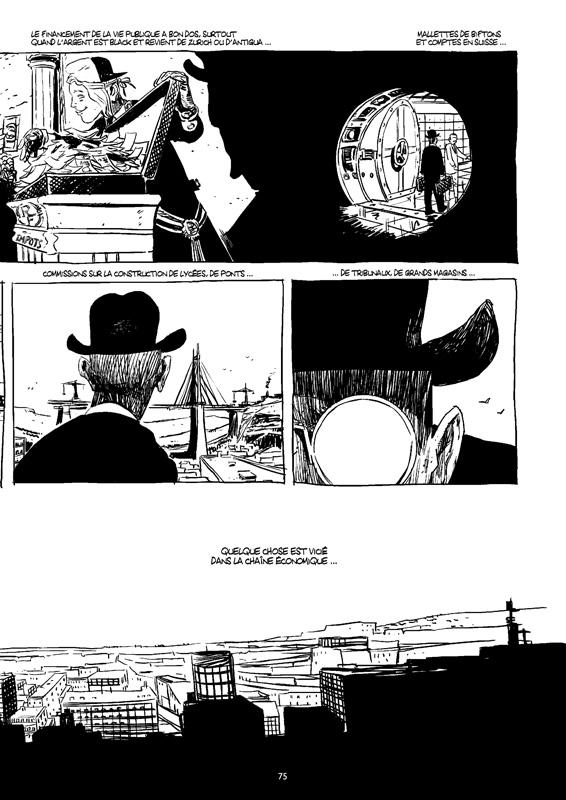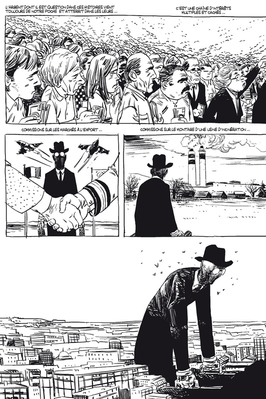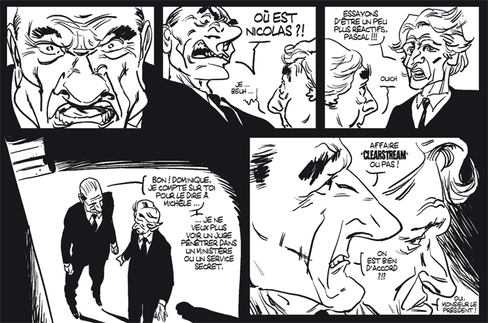 D. R. : Pas vraiment, puisqu’elle traite aussi de l’univers compliqué de la finance et que le personnage principal est un double de papier, mais ce n’est pas moi. Cet album n’est pas une adaptation de mes livres non plus. C’est une véritable création originale. La BD demande un effort de simplification très intéressant qui permet de mettre cette histoire en perspective. L’exposé de mon parcours, depuis mon départ de Libération jusqu’à l’affaire Clearstream, devrait donner des clés aux lecteurs pour comprendre les affaires Clearstream mais surtout les crises financières et politiques actuelles. Parce que nous parlons de finance, de politique et du travail des juges. Après lecture, on regardera par exemple avec un œil neuf le fait que l’homme d’affaire Bernard Madoff ait eu un compte chez Clearstream. C’est une info ça, non ?