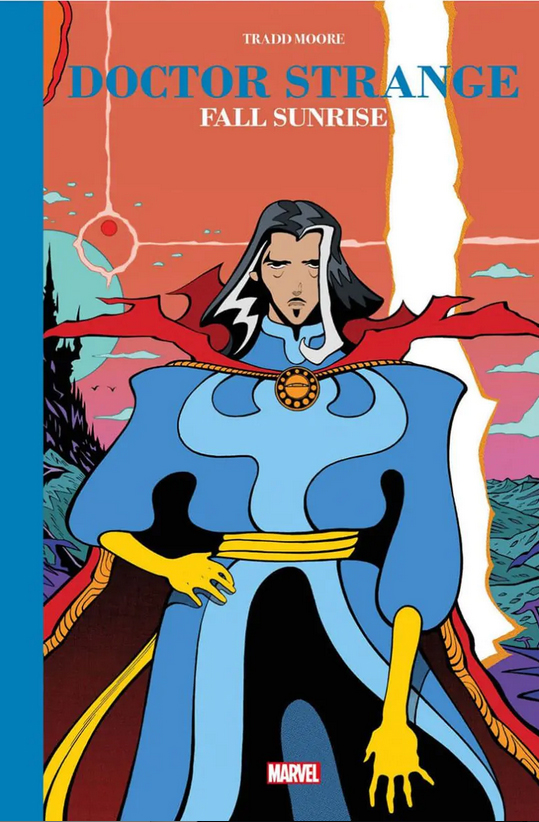 Attention, gros morceau artistique ! Le dessinateur Tradd Moore, sa femme coloriste Heather, son style ultra psychédélique, au service du Sorcier Suprême ? Il y a comme une évidence là dedans, mais l’artiste est seul scénariste là dessus.
