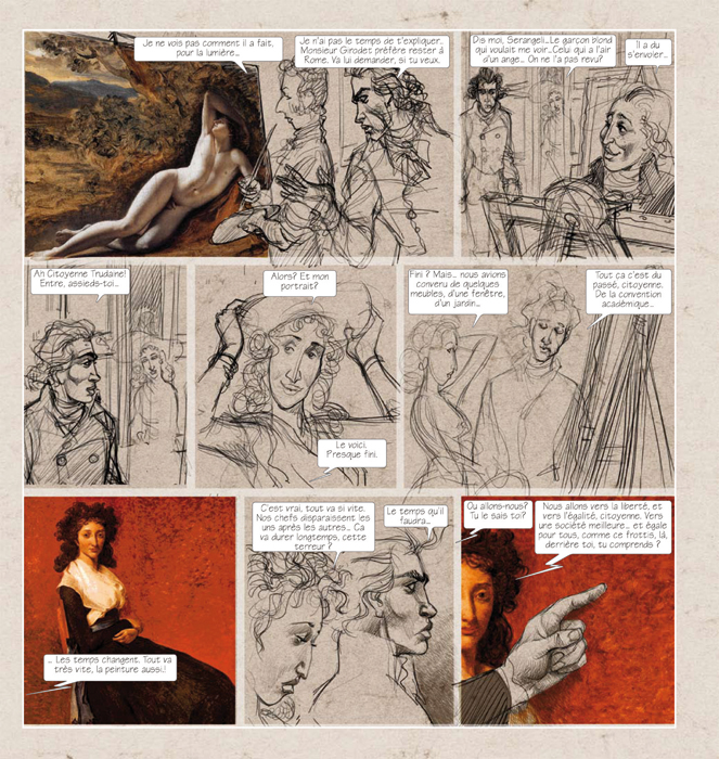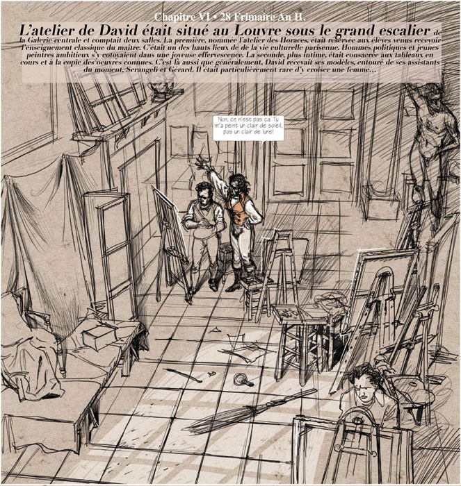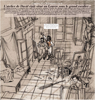 En pleine Révolution française et XXIe siècle, un personnage à l’accent slave a rendez-vous au Louvre avec le peintre David. Il s’appelle Jules Sterne, comme un des protagonistes du Ciel au-dessus de Bruxelles, un précédent album de Bernar Yslaire… Il y sera question d’art, de temps, de révolutions et du Louvre, évidemment..! La création de l’album est à suivre sur le blog d’Yslaire.