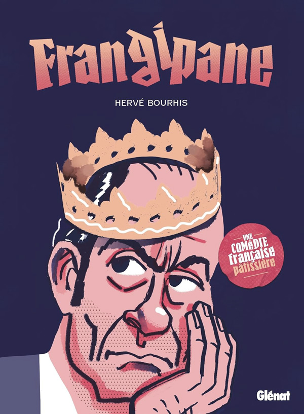 À travers la crise suscitée par la pénurie de frangipane, Hervé Bourhis tisse une comédie sociétale faussement légère et assez décalée. Il convoque le cinéma français, dont le savoir-faire en la matière n’est plus à démontrer, et notamment les oeuvres du duo Agnès Jaoui-Jean-Pierre Bacri, dont le regretté comédien donne ses traits au héros (on aurait d’ailleurs pu sous-titrer cet album « Le Sens de la fève »). On l’entendrait presque râler, sous le pinceau épais et expressif de l’auteur de Mon infractus, qui use d’une gamme de couleurs réduite – bleu-mauve, rouge, rose, orangé – pour croquer sa farce bordelaise. La montée de la pensée réactionnaire, la droite radicale décomplexée, la jeunesse déprimée, les idéaux de gauche encroûtés, l’égoïsme et le repli sur soi comme maîtres-mots, voilà le tableau – peu réjouissant mais tellement actuel – que l’auteur brosse sous son scénario absurde de quête à la galette. C’est souvent assez anecdotique, parfois un peu forcé, mais de temps en temps carrément hilarant, comme cette fête où les participants portent des masques réalistes de gens de bonne compagnie, comme Donald Trump ou Didier Raoult, et assistent à un spectacle de stand-up anti-woke. Une bonne tranche de rigolade pour accompagner la part de galette, on aurait tort de s’en priver.