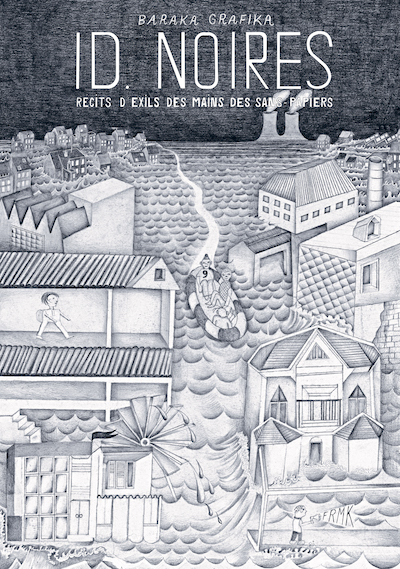 ID. Noires est signé du studio Baraka Grafika, collectif mêlant des migrants membres du groupe bruxellois de La Voix des Sans-Papiers (Mamadou Taslim Diallo, Alberto Isifin Tchama, Halidou Ouandaogo et Thierno Dia) et des étudiants issus du master BD de l’École Saint-Luc (Amandine Bertholet, Simon Boillat, Agustin David Llosa et Margot Preham). À huit cerveaux et seize mains, il ont tenté de décrire ce qu’était un exil, une arrivée dans un pays étranger et l’enfer administratif qui s’ensuit. Les parcours de Taslim, venu de Guinée-Conakry, le Sénégalais Thierno, le Burkinabé Halidou et le Bissao-Guinéen Alberto racontent, chacun avec ses singularités, les violences du pays d’origine et du voyage mais aussi la détermination et le courage de ces hommes et femmes qu’on anonymise ici sous le nom de migrant. Ils mettent aussi en évidence le peu de cas que nos pays riches font de ces gens qui se retrouvent baladés, exploités et finalement mis hors-la-loi.