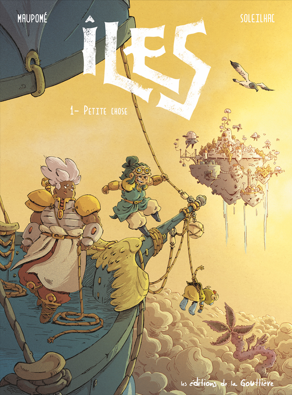 Les auteurs de la chouette série Sixtine reviennent avec une nouvelle saga des plus prometteuses : une aventure de fantasy aérienne, qui évoquera forcément les dessins animés de Miyazaki, mais qui trouve vite sa propre personnalité dans un scénario malin et complexe (mais sans être compliqué!), qui ne dévoile ses secrets qu’au compte-gouttes. On reconnaît bien là le talent de Frédéric Maupomé (Anuki, Supers, La Quête…) pour créer des univers excitants, esquisser des personnages nuancés, préserver un maximum de suspense, tout en laissant l’action s’exprimer. Sans oublier de glisser un petit message sociétal, ici sur la folie des humains prêts à détruire leur terre pour un profit à court terme et l’obsession du pouvoir et de la force, contre tout avis scientifique. Au dessin, Aude Soleilhac s’en donne à coeur joie dans la composition de ce monde imaginaire et ses bateaux volants, entre steam punk, piraterie et aventure exotique. Envolez-vous vite avec Alie et Ienisseï, vous ne regretterez pas le voyage !