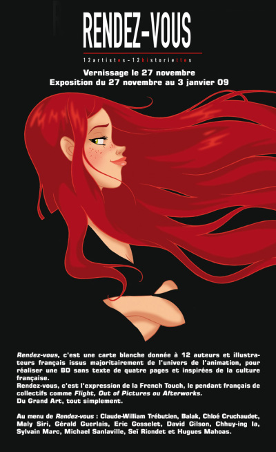 Si vous voulez découvrir de nouveaux talents de l’illustration et de la bande dessinée, c’est à la galerie Arludik qu’il faut vous rendre. En effet, s’y exposent en ce moment les originaux du chouette ouvrage collectif Rendez-vous, paru chez Akiléos et dont BoDoï avait publié en avant-première deux histoires dans son numéro 121. Douze artistes français issus de l’animation, dont Chloé Cruchaudet et Sylvain Marc, ont donné leur vision de la culture française dans de jolies histoires courtes. À découvrir d’urgence.