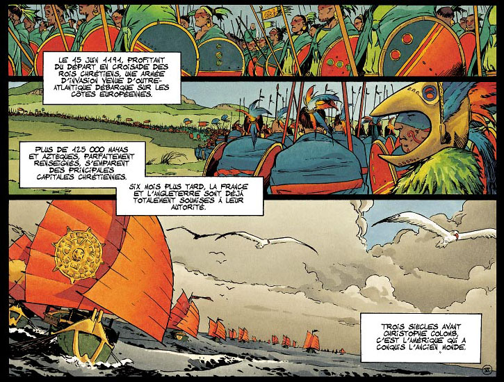 Souvenez-vous, Robin des Bois affrontait non seulement le félon prince Jean mais également des hordes d’Incas qui, en juin 1991, bien avant que Christophe Colomb ne découvre l’Amérique, envahissaient au pas de charge l’Angleterre en général et la forêt de Sherwood en particulier. Avant de s’occuper de l’Europe entière… Cette uchronie musclée est le sujet de Luxley, né dans le cerveau fertile – doit faire chaud là-dedans – de Valérie Mangin (Le Dernier Troyen, Le Fléau des dieux) et dessiné par Francisco Ruizgé. Les lecteurs de BoDoï ont lu avant tout le monde Le Mauvais Œil, début de cette nouvelle série (BoDoï 89 à 91).