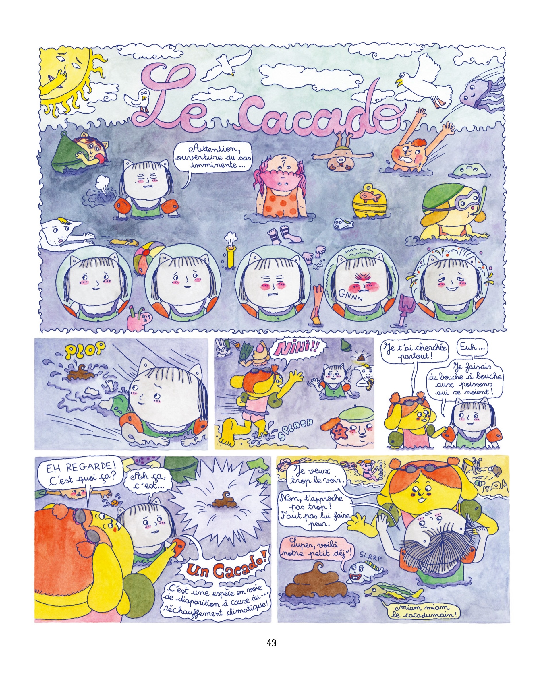 Il y a un peu de Mimi Cracra, de Nini Patalo et de Tom Tom et Nana dans ces aventures-là, avec quelques croûtes, pets et odeurs de pieds en supplément, pour la plus grande joie des petits, et des grands. Pour son premier album, la jeune Margot Farnoux offre aux lecteurs une plongée rafraîchissante dans l’innocence et l’impertinence qui caractérisent l’enfance. Ses planches sont peuplées de petits détails marrants et de trouvailles graphiques qui rendent l’ensemble décalé et singulier. La narration se joue à plusieurs niveaux et la lecture est rythmée par l’alternance entre histoires longues et courtes saynètes, avec en prime quelques strips qui apportent des petites touches vitaminées. Les éditions Biscoto ont fait un bel effort pour la fabrication de ce livre avec un grand format et un papier du plus bel effet qui met en valeur les jolies couleurs qui égayent les péripéties de ces pétillantes jeunes filles.