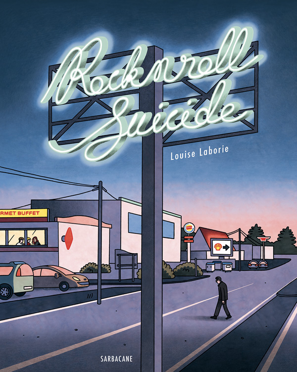 Après Morgane Fox, la seconde bande dessinée de Louise Laborie se pose de nouveau dans une petit ville anonyme, mais suit des personnages plus grands, des post-ados qui se cherchent une porte de sortie et une carrière possible. Entre rêves de gloire ou à tout le moins d’un ailleurs, et la cruelle réalité d’un monde du spectacle si concurrentiel. Avec son trait rond et sa mise en couleurs marquée, joliment ombré façon aérographe, elle brosse leurs portraits avec une belle empathie, à tel point qu’elle accroche facilement son lecteur. Pourtant, son intrigue est toute simple et pourrait même paraître fade et creuse. Mais sa mise en scène impeccable, son sens du suspense, et sa manière subtile de construire ses protagonistes – avec leur luminosité et leurs failles – et de tisser les relations entre eux font qu’on dévore Rocknroll Suicide avec un plaisir non feint, comme on réécoute avec gourmandise un vieil album de Bowie.