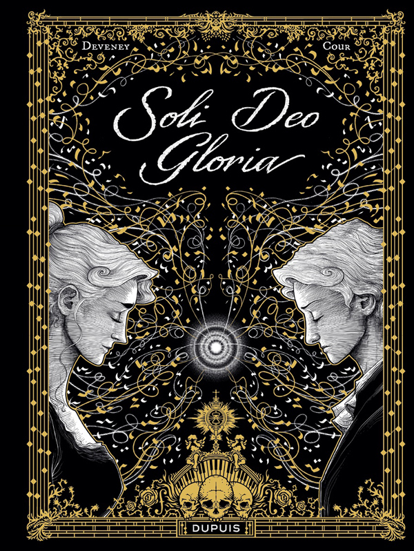 Inspiré par la musique baroque, Antonio Vivaldi et Jean-Sébastien Bach, JC Deveney construit l’histoire de ses deux jumeaux comme un conte aux accents gothiques. À chaque étape de leur éprouvant périple, ils mûrissent et affinent leur vision de la musique, qui doit élever l’âme pour Helma, qui doit mener au pouvoir pour Hans. De grands sentiments traversent donc cette histoire qui court sur toute une vie, souvent palpitante même si un peu trop prévisible et balisée par moments : comme dans Géante, JC Deveney semble vouloir ménager un récit pour le plus large public et ne pas oser la transgression sur la base d’une trame et d’un univers pourtant originaux et riches. Rien de gênant, mais il pourrait aller tellement plus loin ! Heureusement, le travail graphique d’Édouard Cour (Héraklès, Super Deltas, Les Souvivants, ReV) colle parfaitement à l’ambition : son noir et blanc joue des ombres de la trame, sa plume marque les cases d’un trait viscéral, ses grandes cases ou doubles-pages laissent éclater une puissance expressionniste rare, et il joue intelligemment avec de virevoltantes volutes colorées pour incarner la musique. Singulier et léché, le dessin d’Édouard Cour offre alors une dimension éclatante à cet intéressant projet, édité de jolie manière en grand format par Dupuis.