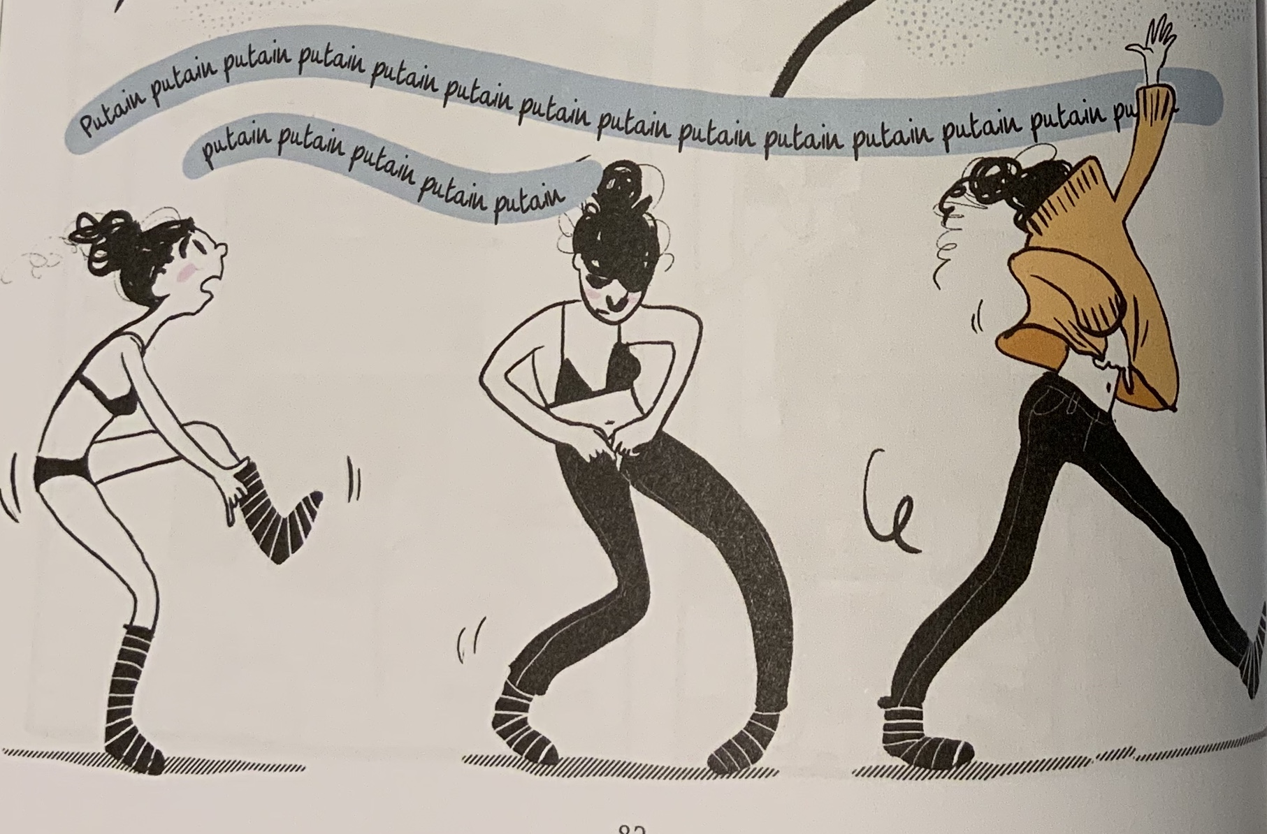 Graphiquement, Mademoiselle Caroline invente deux silhouettes à la Laurel et Hardy : une fine et une ronde (surtout des fesses). Ce duo comique fonctionne à merveille et installe les personnages dans leur rôle. Depuis son premier livre (Enceinte), le style de cette autrice prolifique continue d’évoluer. Globalement coloré et joyeux (sauf bien entendu dans Chute libre, carnets du gouffre), son trait au noir est épais et très expressif. On ressent son plaisir à dessiner ses héroïnes.