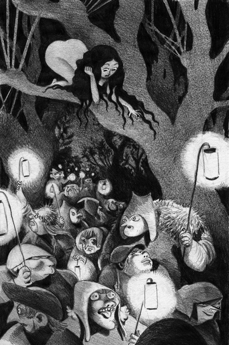 Ils sont deux à mélanger leurs coups de crayon pour nous offrir dans Miss Pas Touche (une série écrite par Hubert) les piquantes aventures d’une vierge échouée dans un bordel, afin de venger sa sœur assassinée. Plus intrigant encore nous semblait leur one-shot Jolies ténèbres, à paraître en mars. Le duo Kerascoët – composé de Sébastien Cosset, 33 ans, et de Marie Pommepuy, 30 ans – livre régulièrement de ce nouvel opus quelques esquisses sur son site. De quoi nous allécher suffisamment pour harceler le service de presse de Dupuis et obtenir en avant-avant-première les « épreuves » (sur papier non relié ou en format numérique) de l’album.