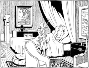 « Nous sommes en train d’en dessiner le quatrième épisode. Une rencontre avec le scénariste Hubert, via des amis communs, est à la base de cette série. Il nous avait proposé un autre scénario que nous avions mis en images. Mais les éditeurs voulaient publier soit l’histoire sans nos planches, soit notre dessin illustrant un autre récit. Et puis Miss Pas Touche est arrivée. Hubert avait dans ses tiroirs un personnage de vierge instinctive, tandis que nous avions envie d’un polar : nous avons mixé ces deux éléments.