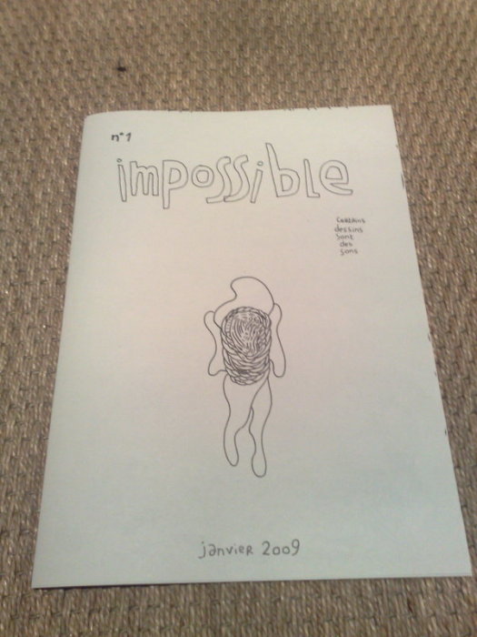 « Impossible, ce sera un numéro unique, IMPOSSIBLE à trouver », nous confiaient récemment Philippe Dupuy et Charles Berberian, à propos d’une revue mystérieuse qu’ils préparaient. C’est Joseph Ghosn, journaliste, blogueur, ami du duo et membre du jury du prochain Festival d’Angoulême, qui révèle la sortie de cette intrigant, qui compte d’ailleurs ses propres dessins, aux côtés de ceux des créateurs de Monsieur Jean. « Le premier numéro vient de sortir, on l’a fait imprimer nous-mêmes, en grand format, sur un papier recyclé, écrit-il sur son blog. 16 pages de dessins. Il y en a 500 exemplaires, pas un de plus. Certains seront à Angoulême, d’autres dans quelques librairies. » Bonne chasse!