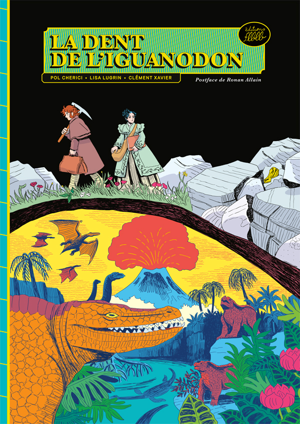 Les talentueux et prolifiques Clément Xavier et Lisa Lugrin (Yékini, Geronimo, Jujitsuffragettes…) se penchent sur l’histoire de la paléontologie et les premiers découvreurs de fossiles de dinosaures en Europe. Une révolution des sciences face au récit de création du monde tiré de la Bible, traitée sur le mode de la quête intime. Habilement, les auteurs dressent le portrait subtil d’un couple passionné, lui médecin de village investi et fasciné par le vivant fossilisé, elle endossant davantage que le rôle de l’assistante puisque dotée d’un coup de crayon rare, pour documenter leurs trouvailles. Fluide et enlevée, leur biographie est donc aussi documentée que sensible, portée par le trait fin et envoûtant de Pol Cherici. Car sous une couverture exubérante de motifs, dorures et visions fantasmatiques de la préhistoire, c’est un noir et blanc aux hachures ondulantes et à la ligne délicate et vivante qui se déploie, parfaitement en accord avec le fond du projet et la tonalité du récit. Des biographies scientifiques ou des BD historiques aussi réussies, on aimerait en lire plus souvent !