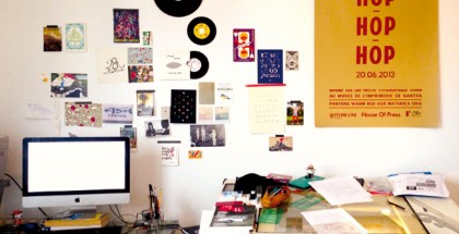 Il s’agit de l »atelier » d’Arthur de Pins, on peut voir sur la droite un sous-verre dans lequel est encadré la couv du journal métro dont il a illustré tout un numéro.
