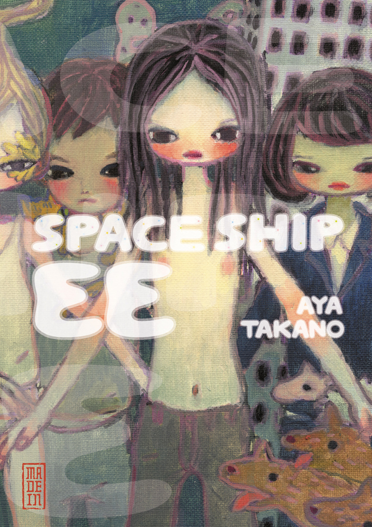 Imaginez des minettes asexuées flottant dans l’espace, au-dessus des rues et des maisons, vêtues de couleurs acidulées et kawai [mignonnes]. Vous aurez une idée des toiles d’Aya Takano, l’une des peintres les plus en vue de la nouvelle génération japonaise. Un style qu’elle exploite dans son premier manga, Space Ship EE, une sorte de délire graphique entre shôjô pour adultes et science-fiction pur jus. Son héroïne, Noshi Hyoda, est une jeune Japonaise qui s’ennuie ferme dans le monde médiocre des salarymen, en 2038. Le soir, elle se transforme en No Name, petit génie des jeux d’arcade, légende vivante du monde des gamers. Trahie par son petit ami, elle quitte Tokyo en fusée et erre dans l’espace. Où la recueille le vaisseau spatial Space Ship EE, sorte d’arche de Noé qui charrie toute une civilisation extraterrestre. Notre Tokyoïte devient alors une guerrière inter-galactique : ses talents de joueuse sont mis à profit pour sauver la mise du peuple alien. Mais, dans l’espace aussi, les mesquineries et jalousies prolifèrent…